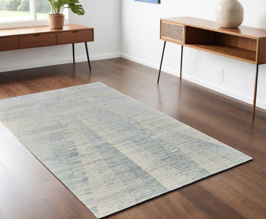 4 x 6 Ivory & Blue Hand Knotted Rug