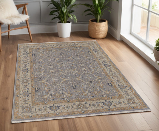 4 x 6 Tan & Gray Wool Oriental Hand Knotted Rug With Fringe