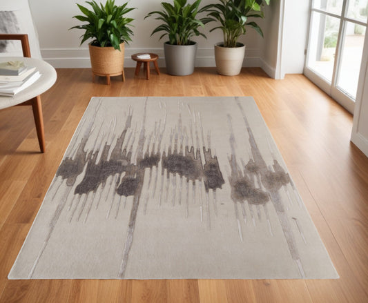 4 x 6 Ivory Taupe & Brown Hand Tufted Rug