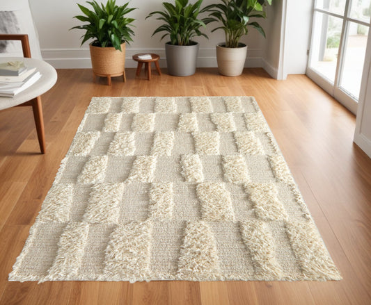 4 x 6 Ivory Wool Geometric Hand Woven Rug