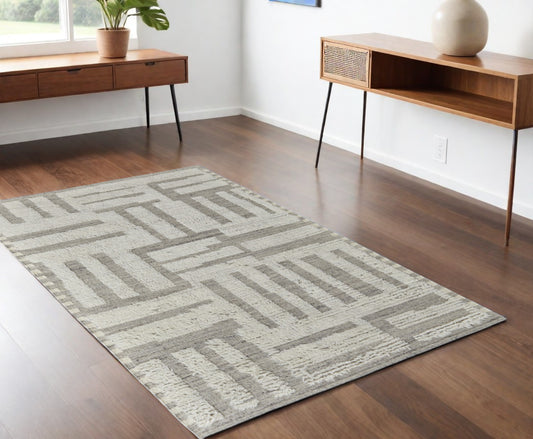 4 x 6 Gray & Ivory Wool Geometric Hand Woven Rug