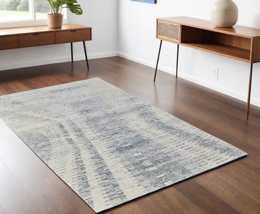 4 x 6 Gray Ivory & Blue Hand Tufted Rug
