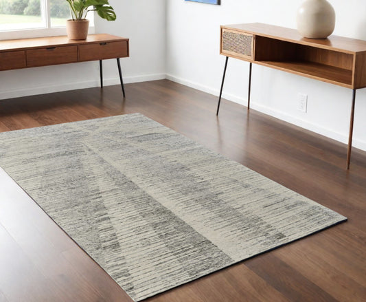 4 x 6 Gray & Ivory Wool Striped Hand Woven Rug