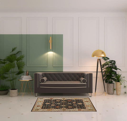 4 x 6 Black Gold & Gray Wool Floral Hand Knotted Stain Resistant Rug With Fringe