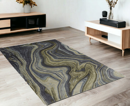 4 x 6 Blue & Black Wool Hand Tufted Rug