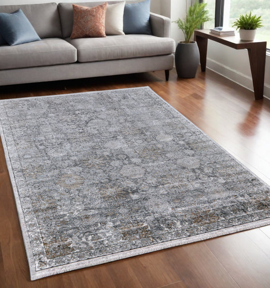 5 x 7 Gray & Silver Oriental Power Loom Rug