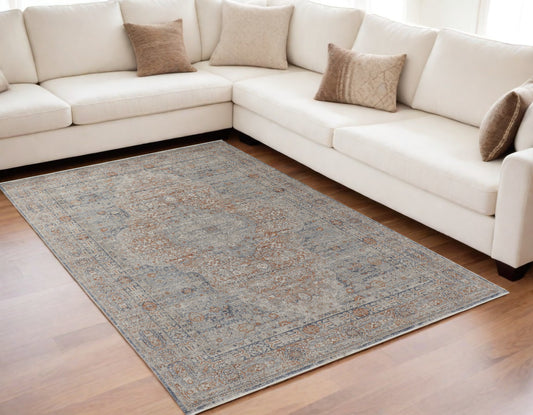 5 x 7 Gray Blue & Taupe Oriental Power Loom Rug With Fringe