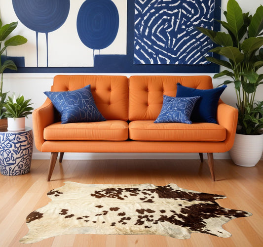 5 x 7 Brown & White Cowhide Hand Knotted Rug