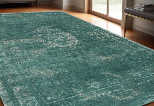 5 x 7 Gray & Green Medallion Non Skid Rug