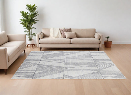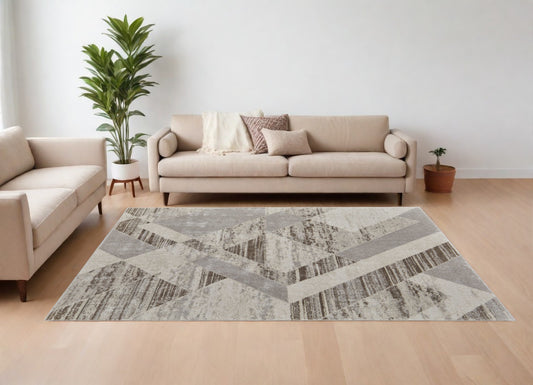8 x 10 Ivory Gray & Brown Geometric Power Loom Rug