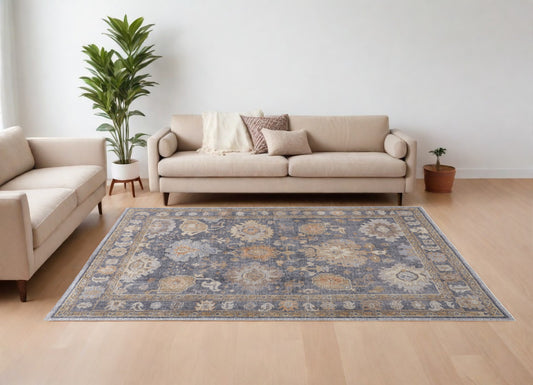 8 x 10 Blue Gray & Tan Oriental Hand Knotted Rug