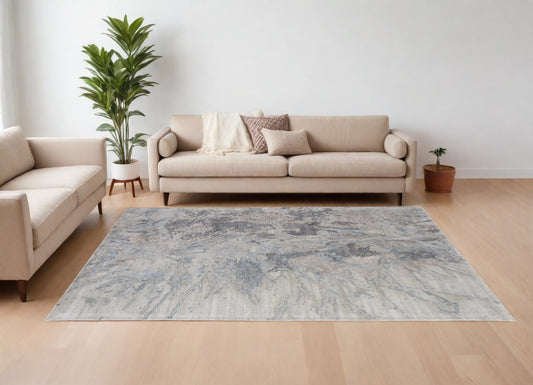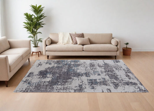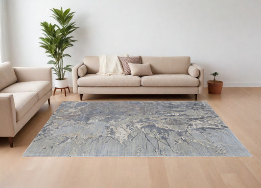 8 x 10 Gray Taupe & Blue Hand Tufted Rug