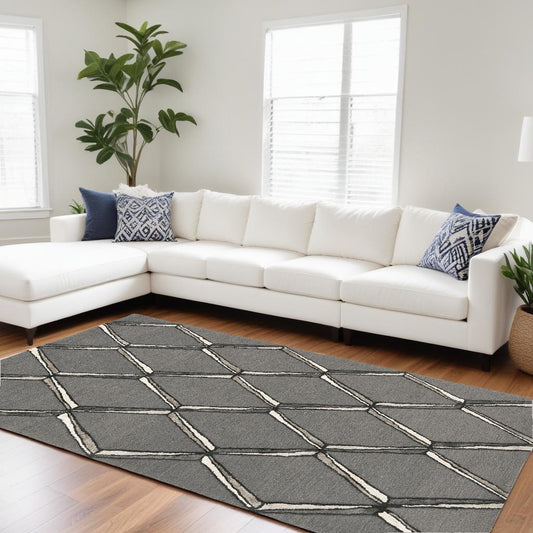 8 x 10 Gray Wool Geometric Hand Tufted Rug