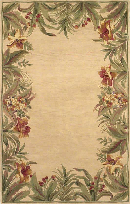 8 x 10 Ivory Hand Tufted Bordered Tropical Plants Indoor Rug