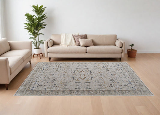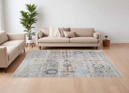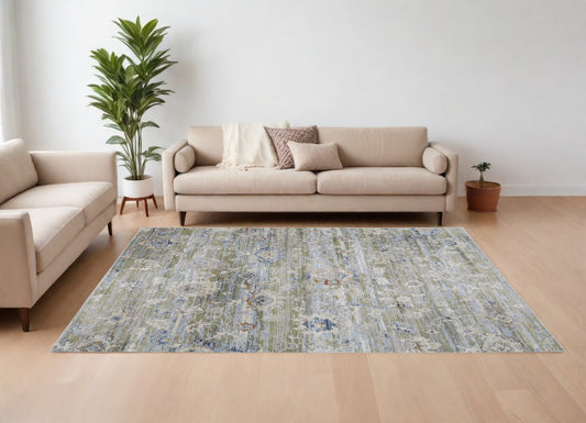 8 x 10 Gray Blue & Green Floral Power Loom Rug