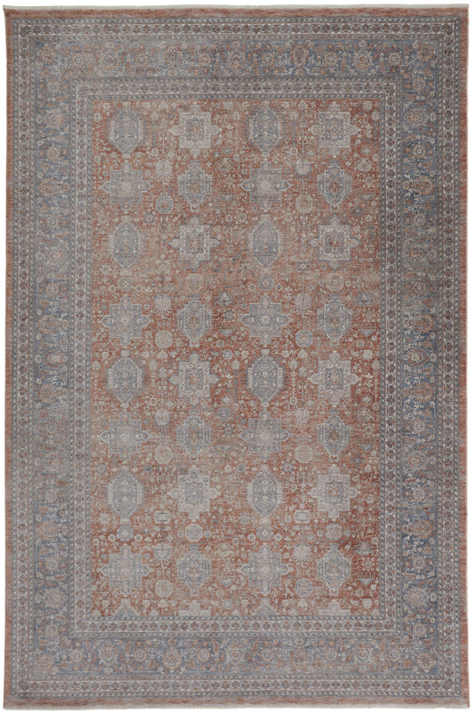 8 x 10 Gray Blue & Red Oriental Power Loom Rug With Fringe