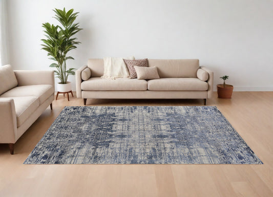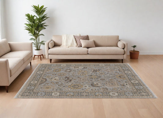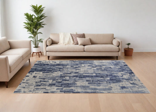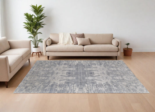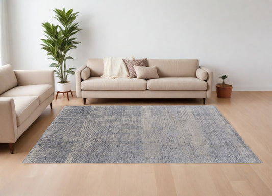 8 x 10 Gray Ivory & Blue Hand Woven Rug