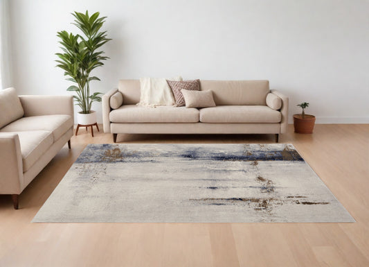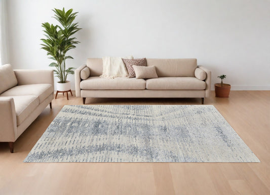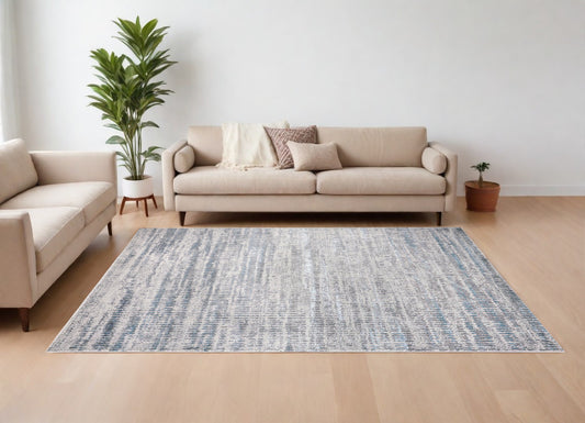 8 x 10 Ivory Gray & Blue Power Loom Rug