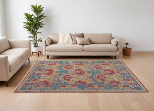 8 x 10 Blue Red & Yellow Wool Oriental Hand Knotted Rug