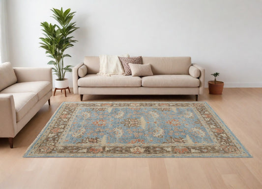 8 x 10 Ivory Gray & Blue Hand Knotted Rug