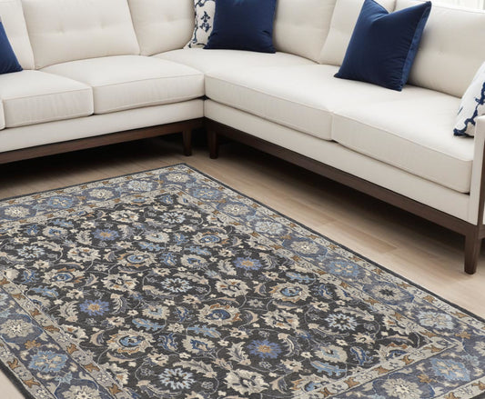 9 x 12 Gray & Ivory Wool Floral Hand Tufted Rug