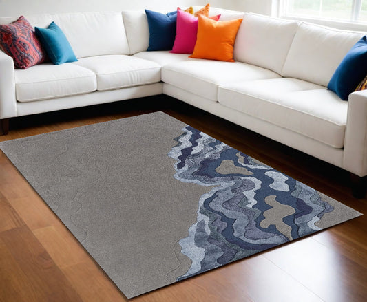 9 x 12 Gray & Blue Wool Hand Tufted Rug