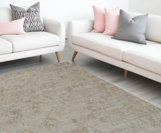 9 x 12 Gray & Taupe Wool Hand Woven Stain Resistant Rug