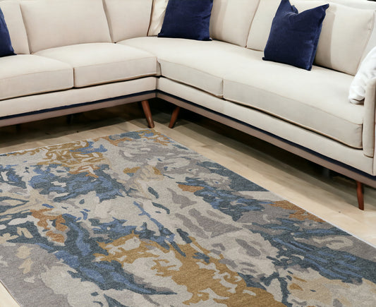 9 x 12 Gray Yellow & Blue Wool Tufted Handmade Stain Resistant Rug