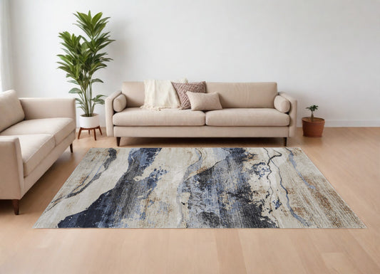 8 x 10 Blue Brown & Tan Power Loom Rug