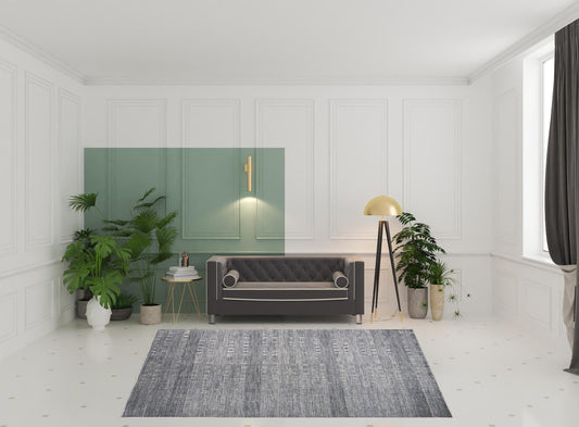 8 x 10 Gray Wool Striped Hand Knotted Rug