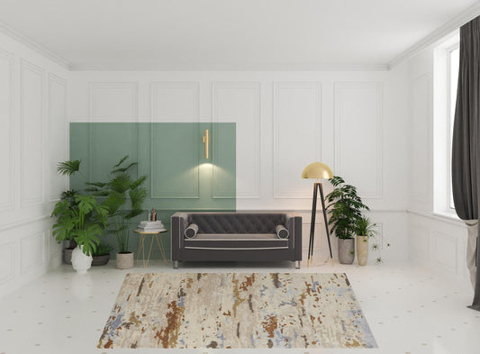 8 x 10 Ivory Blue & Brown Wool Tufted Handmade Stain Resistant Rug