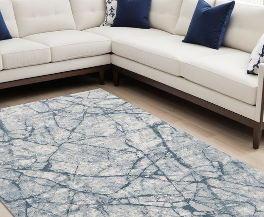 8 x 10 Blue Gray & Ivory Distressed Stain Resistant Rug