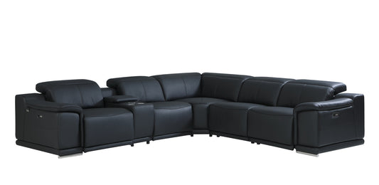 Black Italian Leather U Shaped 6 Piece Sectional w/ Console