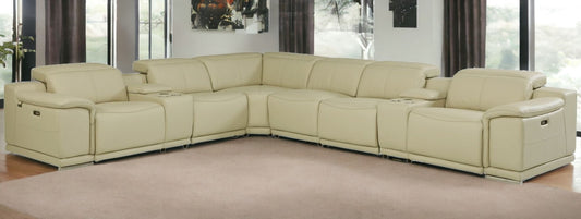 Beige Italian Leather U Shaped 8 Piece Sectional w/ Console