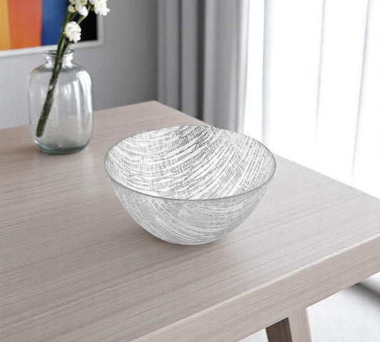 Clear and Silver Handcrafted Glass Round Salad Serve Bowl