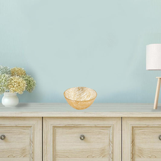 Hand Crafted Glass Gold Accent Salad Or Serving Bowl