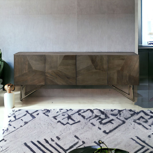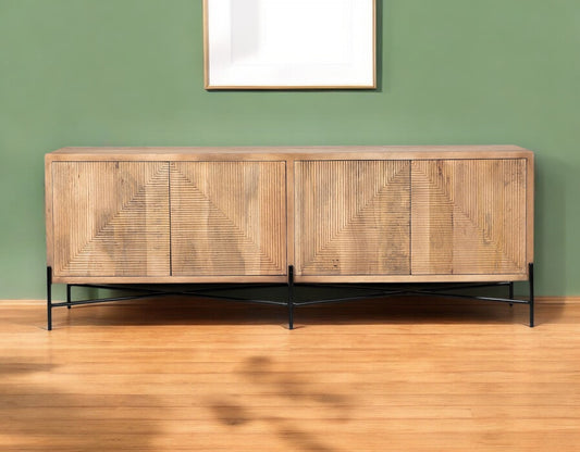 Light Brown Solid Mango Wood Sideboard w/ 4 Cabinet Doors