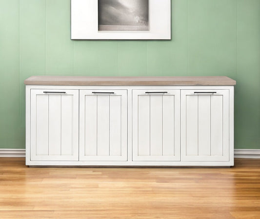 Brown & White Solid Wood Sideboard w/ 4 Doors