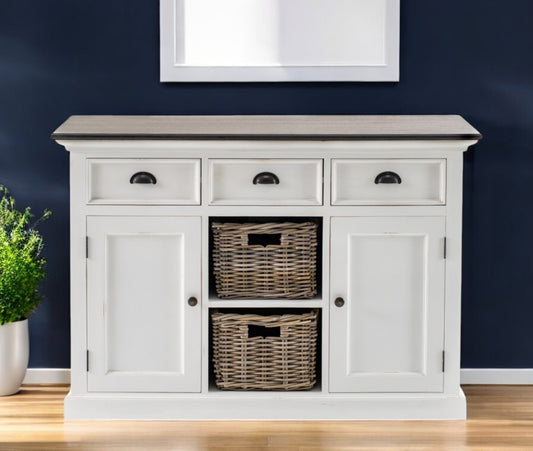 Modern Farmhouse Brown & White Sideboard Server w/ Baskets