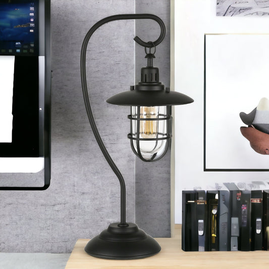 Black Table Lamp w/ Black Cage Shade