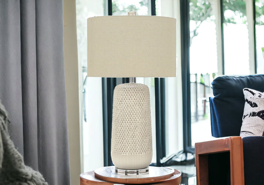 White & Gold Mercury Glass Table Lamp w/ Shade