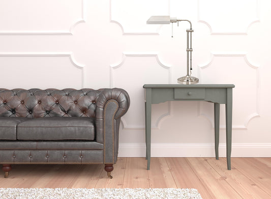 Antiqued Brass Desk Lamp w/ Light Gray Swirl Shade
