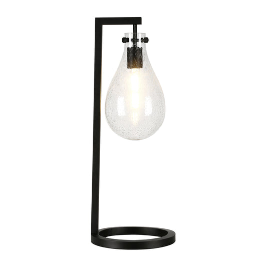 Black Desk Table Lamp w/ Clear Seeded Shade