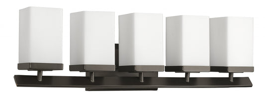 Burgundy 5-Light Oil-Rubbed Bronze Vanity Light w/ Etched Glass Shades