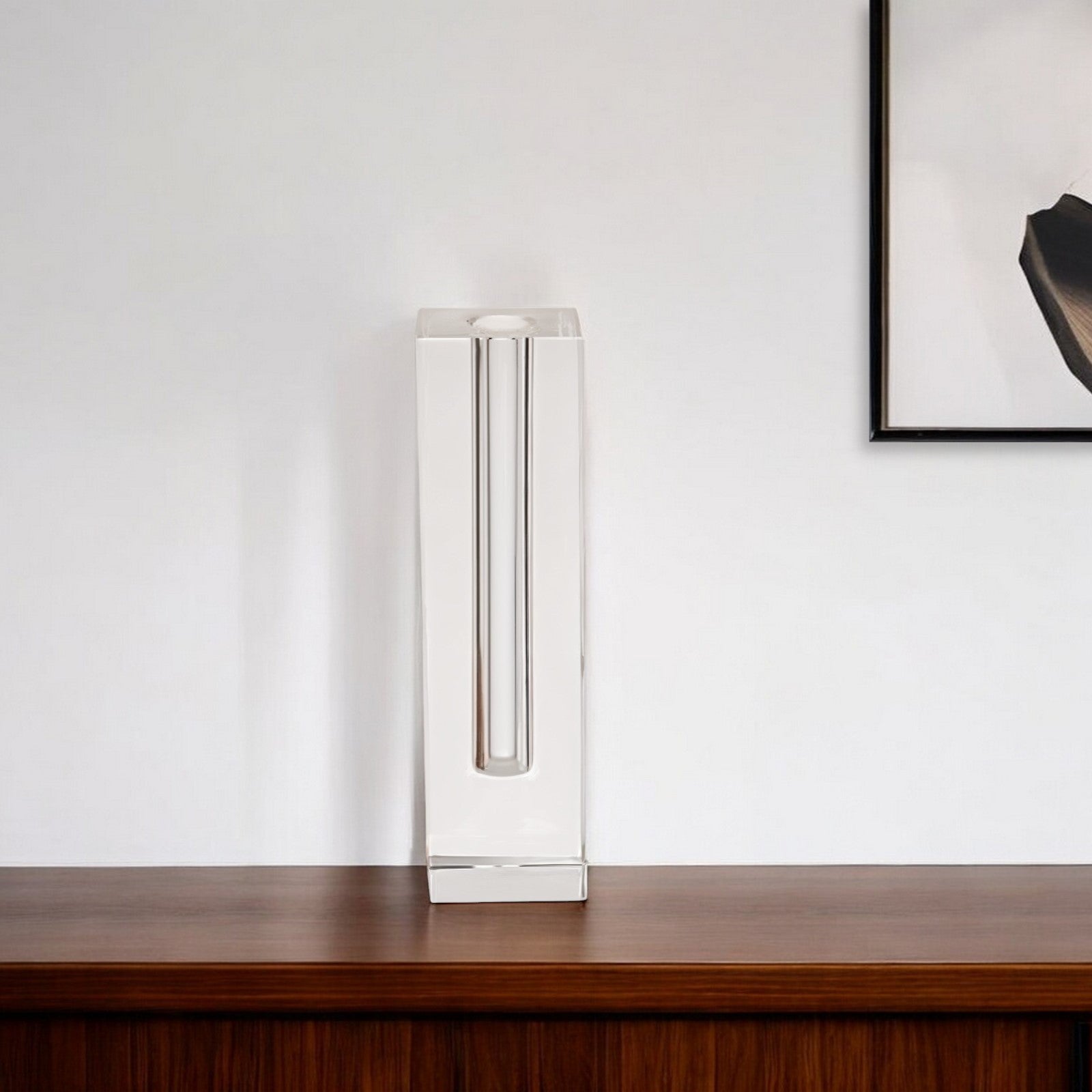 Elevate your space with this stunning 10-inch clear cylinder crystal glass table vase. Its sleek cylinder shape adds a modern touch to any room, while the crystal glass material exudes elegance and sophistication. The clear color allows for versatile styling options, perfect for contemporary decor themes. This exquisite table vase is a statement piece on its own or can be filled with your favorite blooms to create a striking centerpiece. Ideal for displaying on a mantel, shelf, or dining table, this vase is a must-have for adding a touch of glamour to your home.
