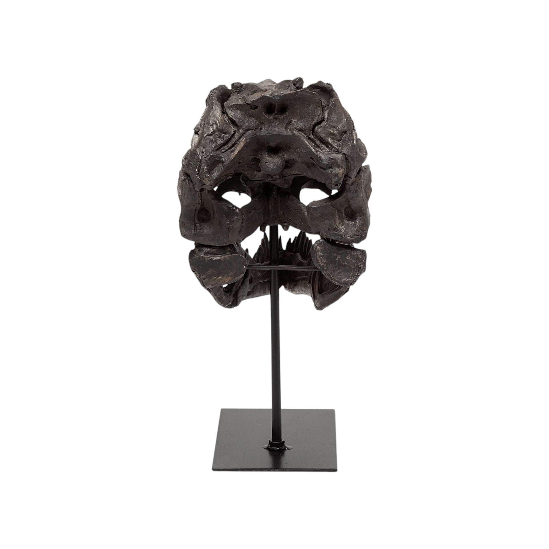 This 12-inch brown fabric dinosaur tabletop sculpture, crafted with high-grade fabric, brings a touch of nature to your living room decor. The contemporary style of this machine-made piece makes it a perfect addition for those seeking a stylish aesthetic. 12-inch h x 10-inch w x 6-inch d.