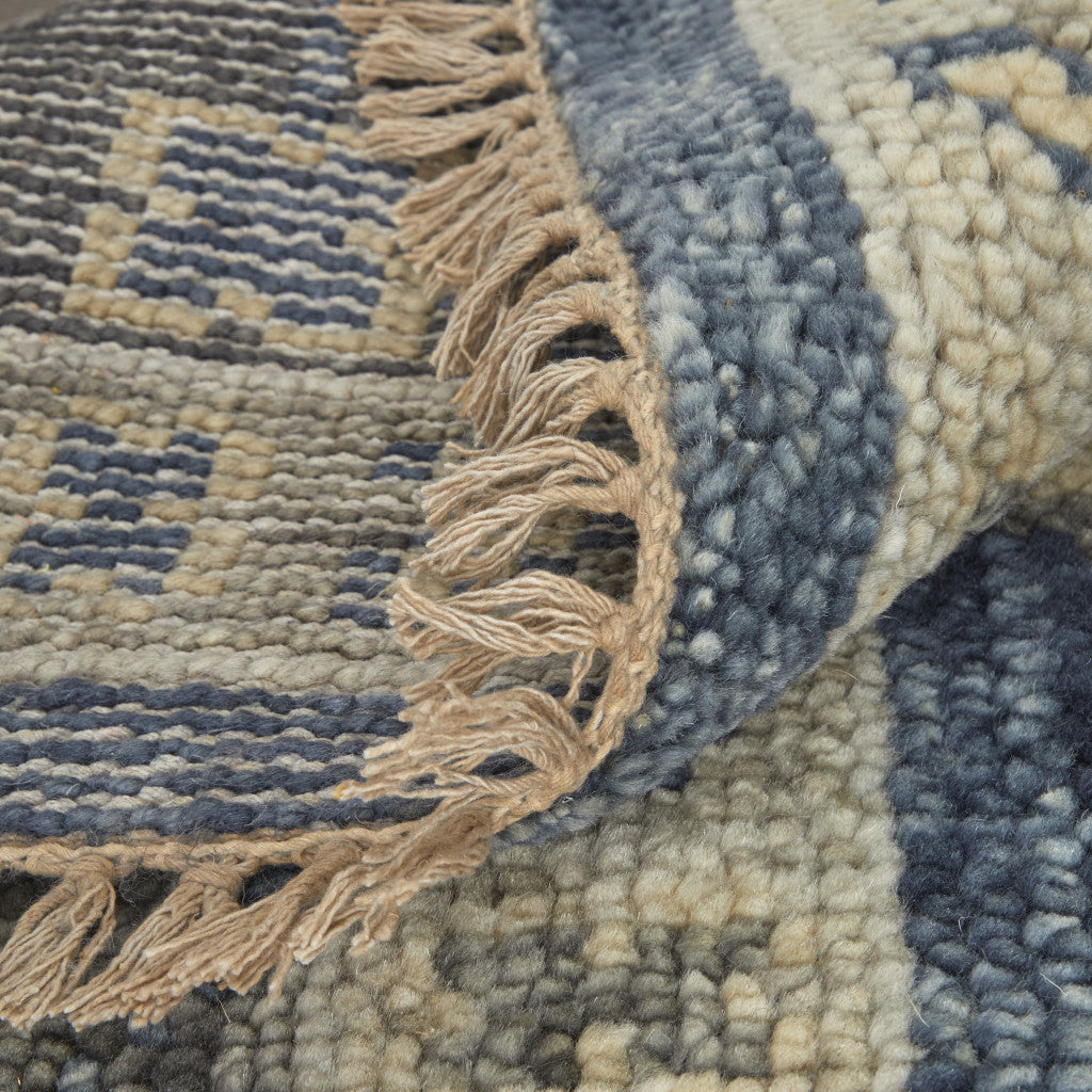 Add great coloration and comfortable texture to your space with this 12-foot x 15-foot blue and gray wool floral hand knotted area rug with fringe. This rectangle shaped rug features a floral design in blue and gray to give it visual interest. A classic shape marries with good looking design for your space ideal for spaces with kids and pets, this rug is stain resistant to help repel stains and spilled liquids. Tassel ends bring a timeless and fashionable look to your interior. Crafted by skilled artisans, this hand knotted rug is genuine and unique. No two will be exactly alike. Place this area rug against a hardwood or tile floor and it will enliven your living space with style and sophistication. 144-inch H x 180-inch W x 0.4-inch D