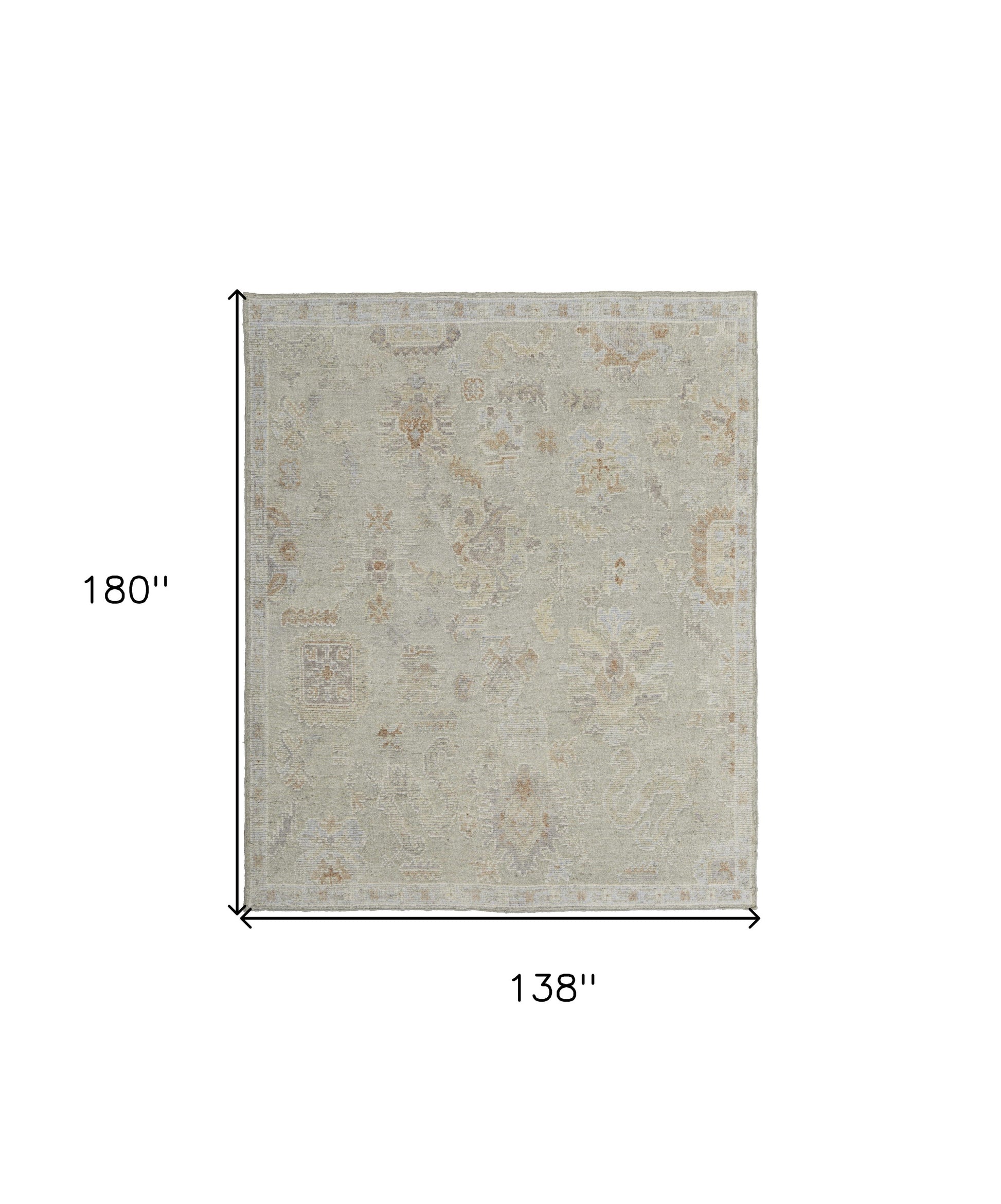 12 x 15 Gray & Brown Wool Floral Hand Knotted Rug