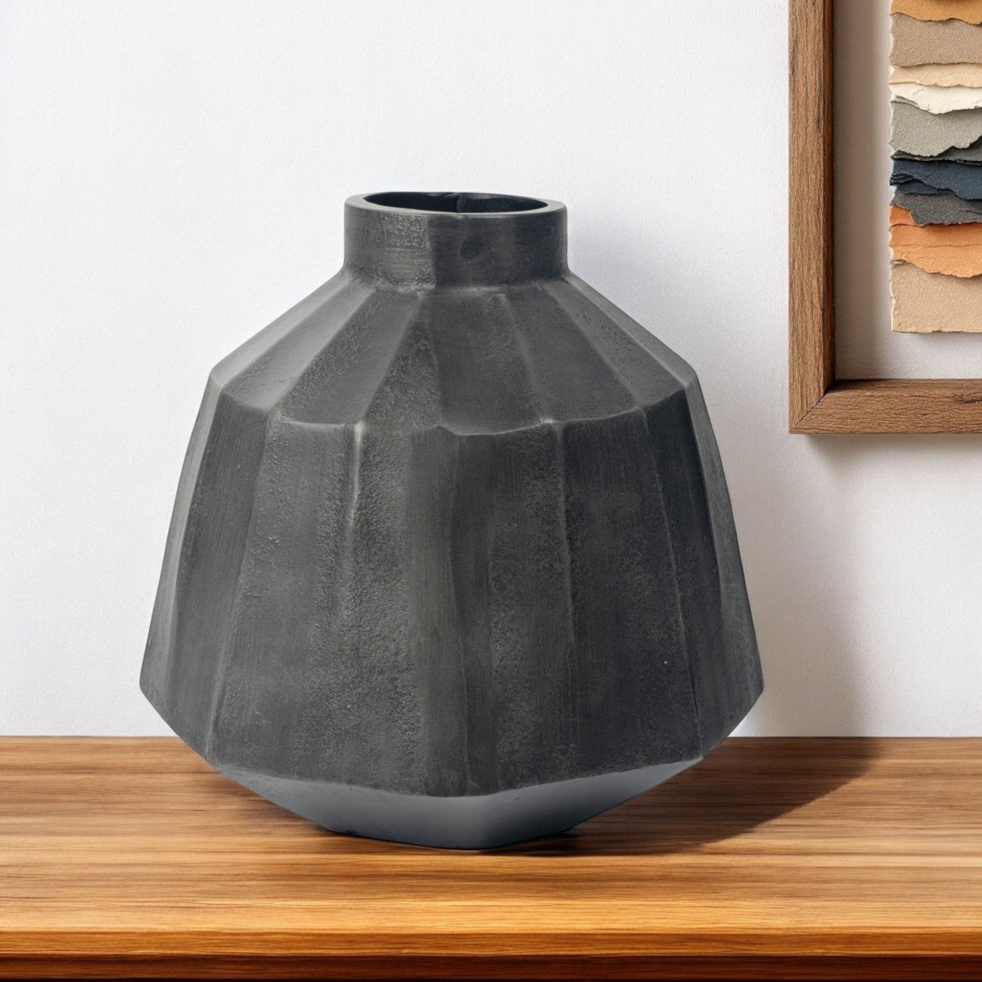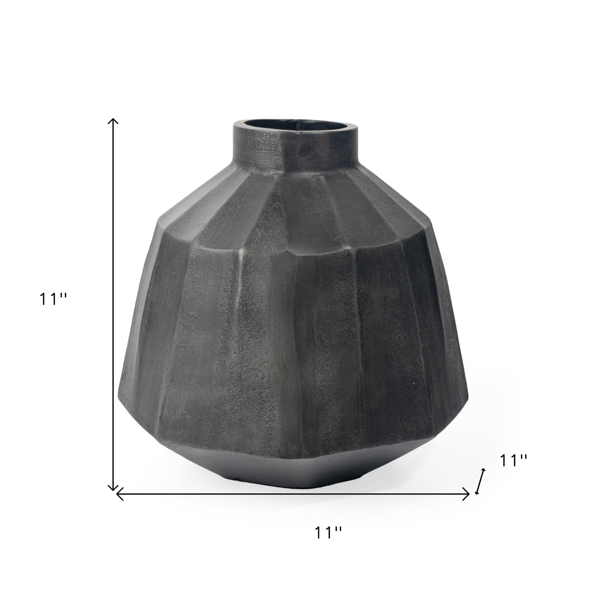 Add a touch of modern elegance to your space with this 11-inch gray geometric round aluminum table vase. The sleek round shape and geometric design make it a stylish addition to any room. Crafted from durable aluminum in a chic gray hue, this vase is both functional and decorative. Its modern style effortlessly complements contemporary home decor. Perfect for displaying your favorite flowers or simply as a standalone decorative piece, this table vase is a versatile accent for any tabletop. The neutral gray color adds a sophisticated touch to your interior design scheme, enhancing the overall aesthetic of your home.